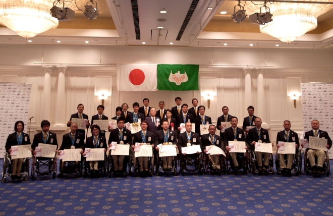 バンクーバーで活躍した21人のメダリストに、賞状と目録(報奨金)が贈呈された