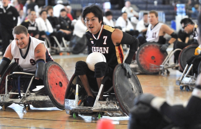 リッチモンド・オリンピック・オーバルで開催されているウィルチェアーラグビー世界選手権は、現地時間の25日、準決勝のUSA(プールA・1位)対日本(プールB・2位)が行われた。初のベスト4入りを決めている日本は、世界王者のUSAを相手に、第1ピリオドこそ互角に戦ったが、第2ピリオドで攻撃のリズムを崩され、51-62で敗退。26日の3位決定戦にまわることになった。