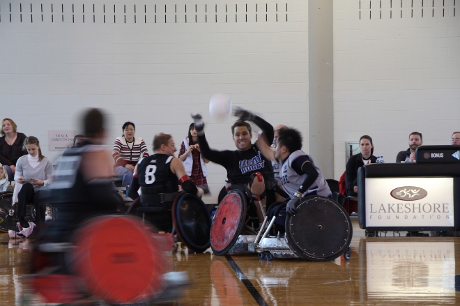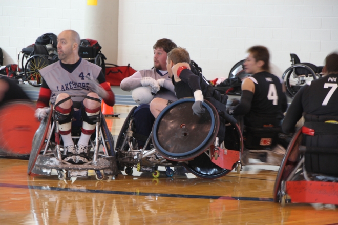 Phoenix Heatの攻撃の中心、島川慎一(黒ユニフォーム4番)=写真は1月、Lakeshore Foundationで行われた「2010 Demolition Derby」の様子(写真提供/山室真澄さん)
