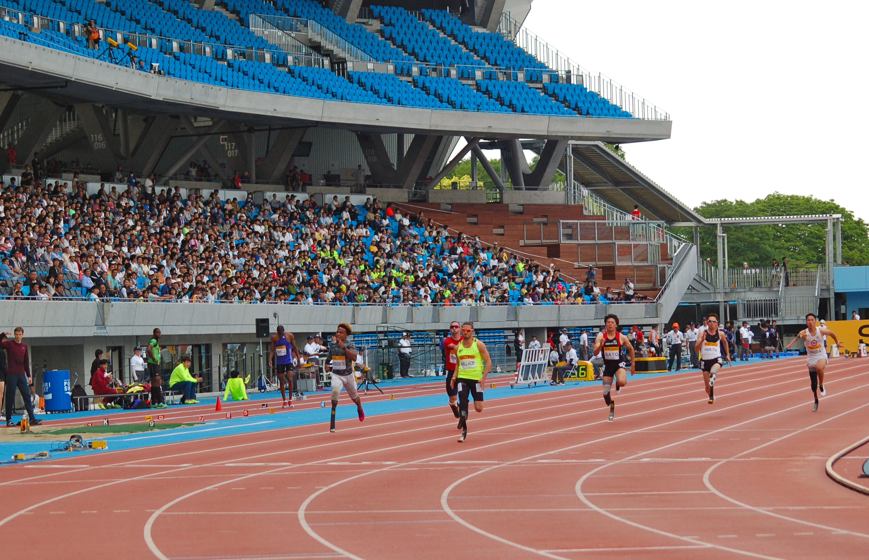 陸上の国内外トップクラスの選手が集まり、等々力陸上競技場(神奈川県川崎市)で5月10日に行われた「セイコーゴールデングランプリ2015川崎大会」。日本陸上競技連盟の主催大会としては初めてパラリンピック種目が組み込まれ、大勢の観衆のなか、日米7名のパラアスリートが躍動した。