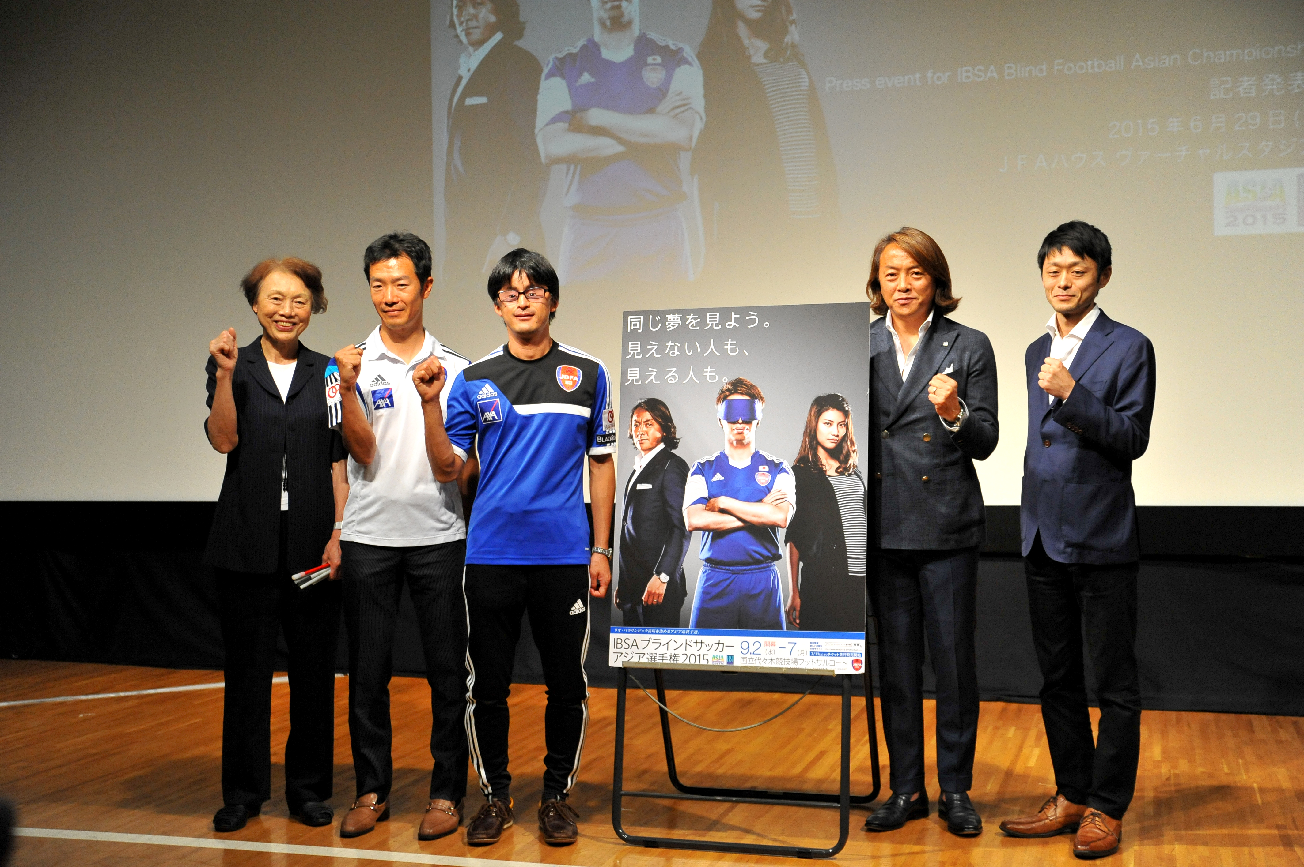 日本ブラインドサッカー協会(JBFA)は29日、日本サッカー協会のJFAハウスで記者発表会を行い、2016年リオパラリンピック地区予選を兼ねた「IBSA ブラインドサッカーアジア選手権2015」を、9月2日から国立代々木競技場フットサルコートで開催することを発表した。出場国は6ヵ国。総当りで行うリーグ戦の上位2ヵ国が7日の決勝戦に進出できる。