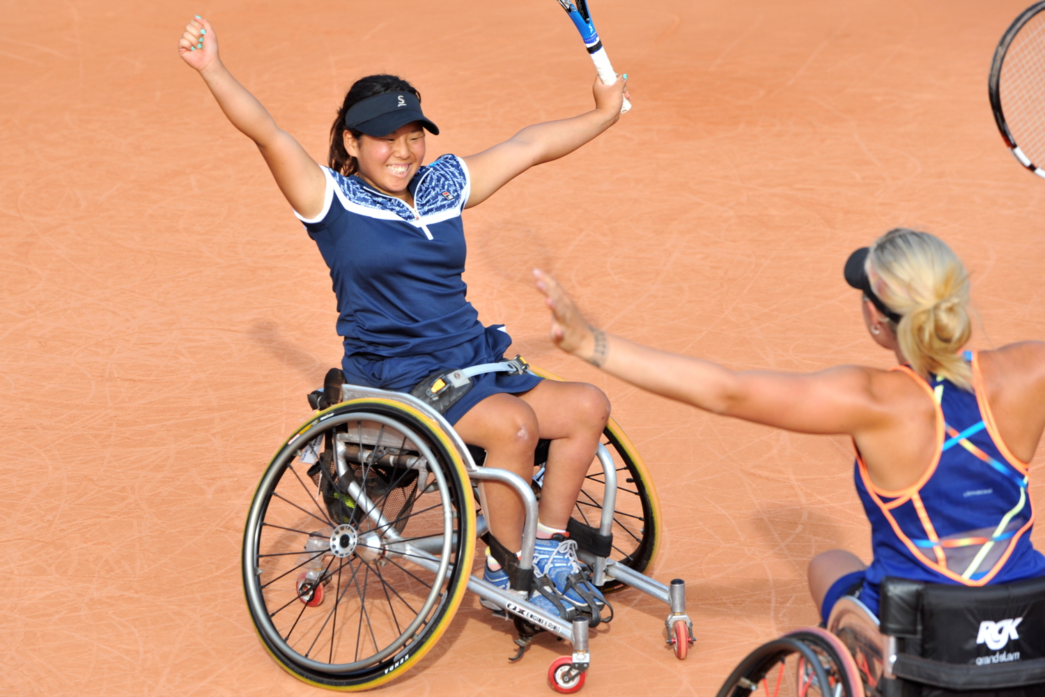フランスのローランギャロスで開催されている全仏オープンテニスは6日、車いすの部の男女シングルスの決勝が行われた。男子の国枝慎吾(ユニクロ)が第2シードのStephane HOUDET(フランス)に6-4、6-1で、女子の上地結衣(エイベックス・グループ・ホールディングス)がAniek VAN KOOT(オランダ)に7-6(7)、6-4でそれぞれ勝ち、優勝を果たした。また、上地はJordanne WHILEY(イギリス)と組んだ女子ダブルスの決勝も制し、単複二冠の快挙を成し遂げた。